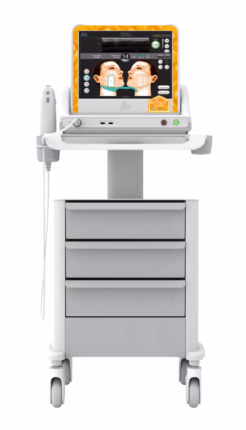 고강도 집속 초음파(HIFU)를 사용해 피부 깊은 층(SMAS층)까지 에너지를 전달하여 콜라겐 재생을 유도하는 리프팅 장비입니다.